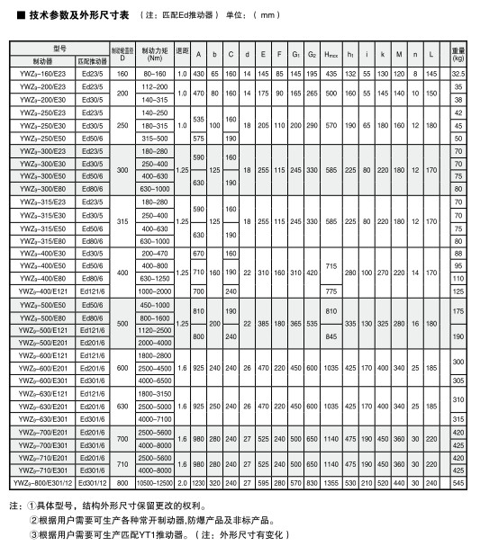 YW系列气动鼓式制动器主要用于起重、运输、冶金、矿山、港口、建筑等机械中各种机构的制动;其安装尺寸符合DIN15435和JB/T7021-2006标准,技术要求符合JB/T6406-2006标准。